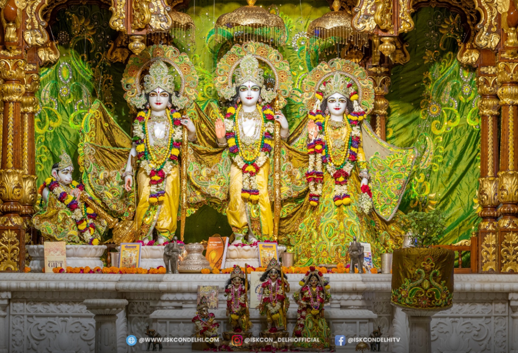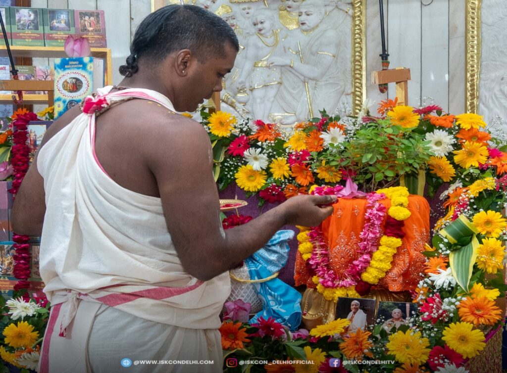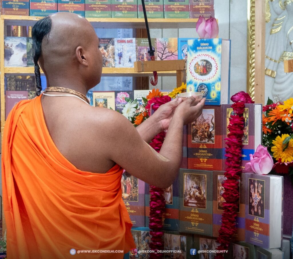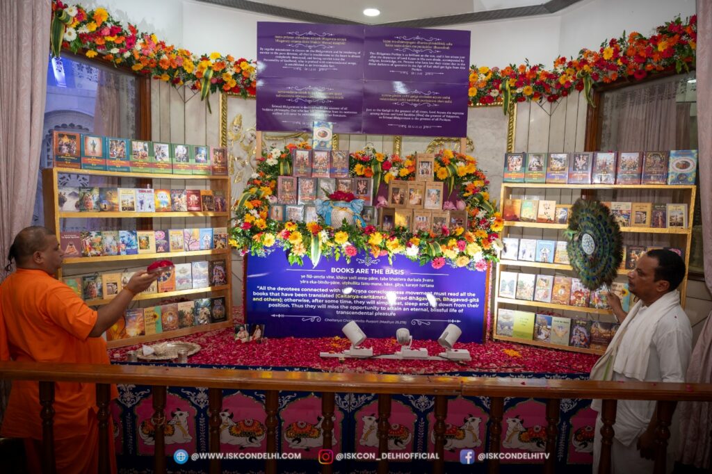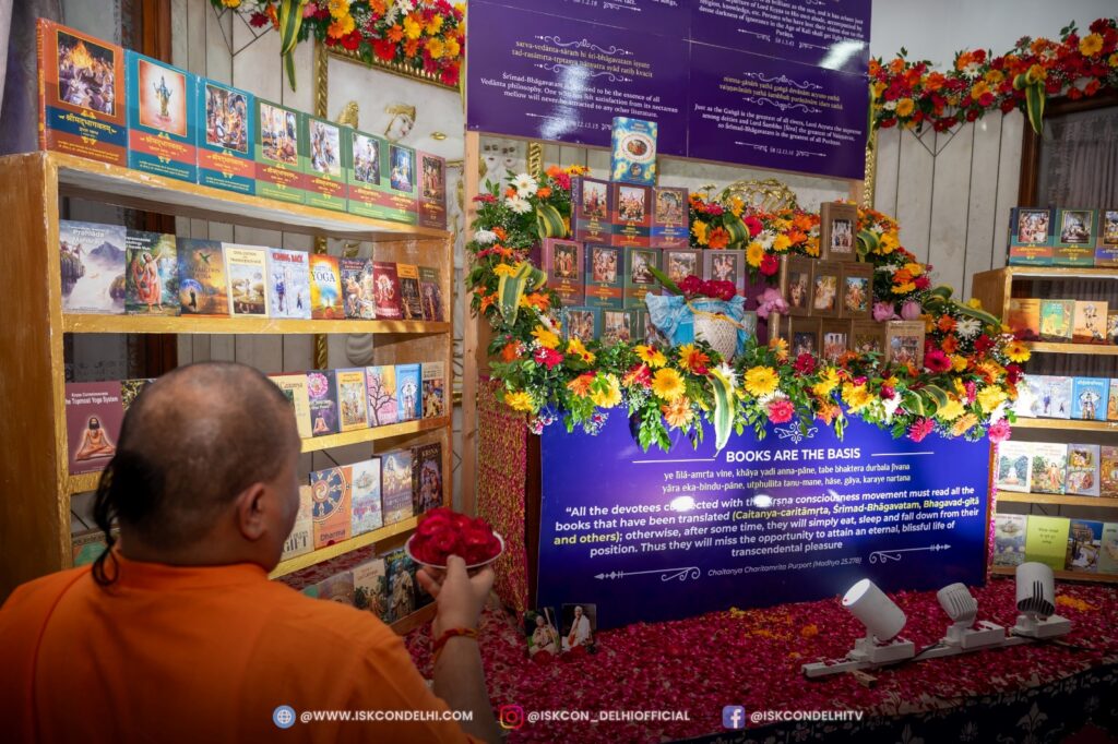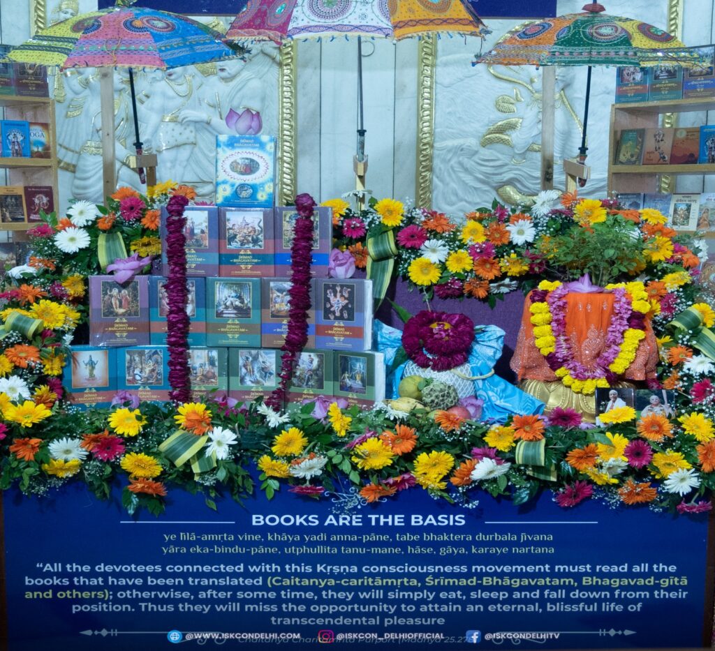 ISKCON Punjabi Bagh, Alter decorated with Srila Prabhupada’s books