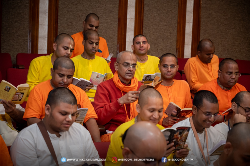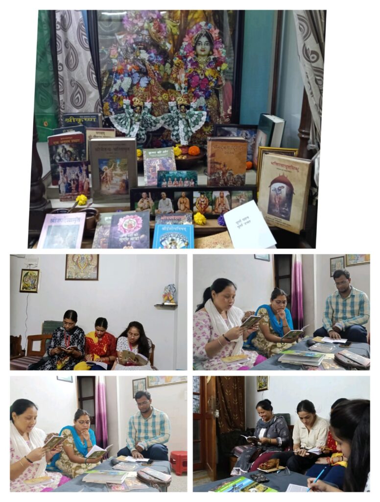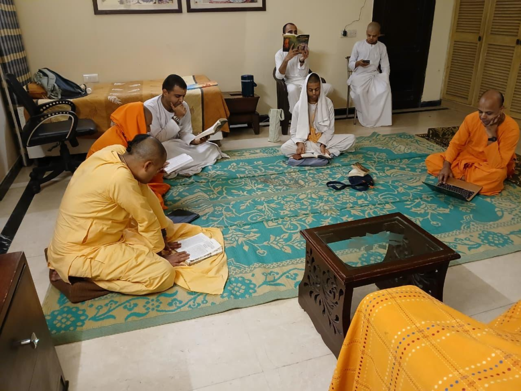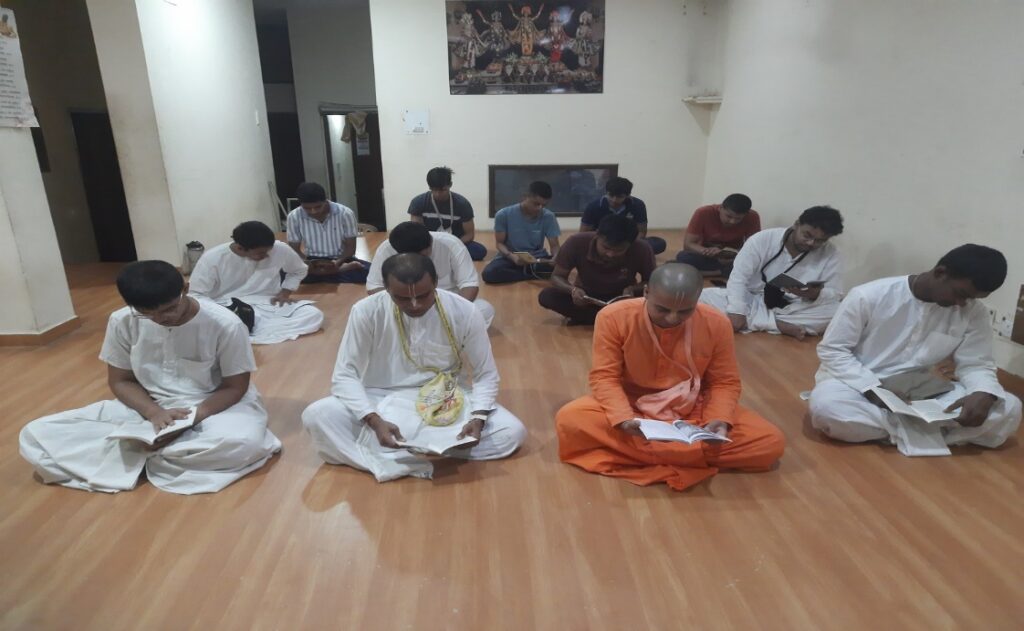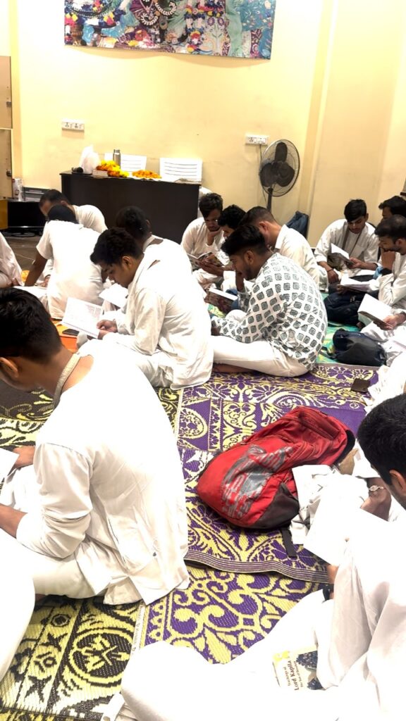 ISKCON Punjabi Bagh, Temple Resident Devotees reading Srila Prabhupada’s books
