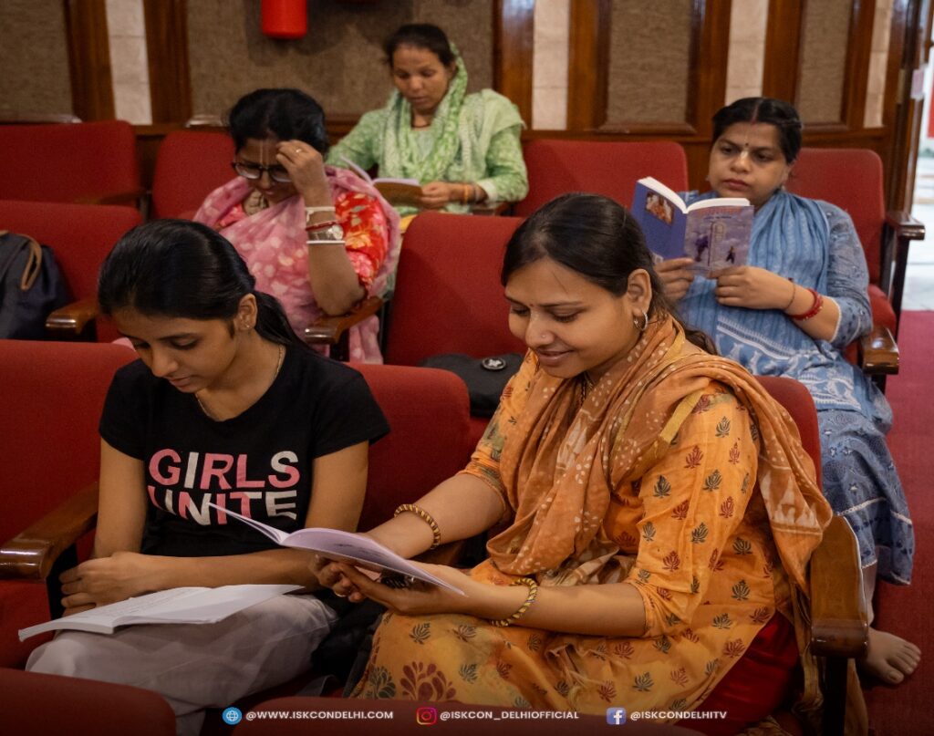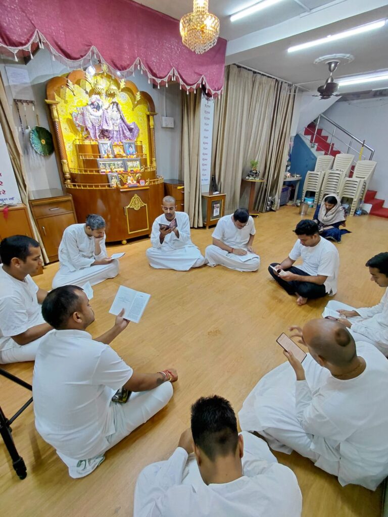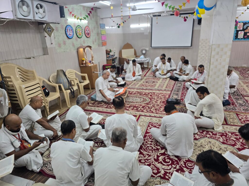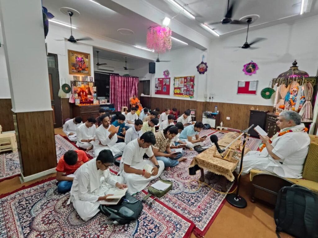 ISKCON Punjabi Bagh, Temple Resident Devotees reading Srila Prabhupada’s books