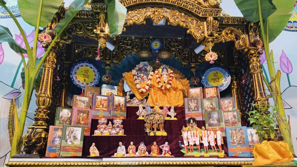 The event also featured beautiful altar decorations, where Srila Prabhupada’s books were placed alongside flowers and ornaments on both his personal altar and the Deities’ altar. The thoughtful arrangements emphasized the centrality of Srila Prabhupada’s vani (divine instructions) in the lives of practitioners.